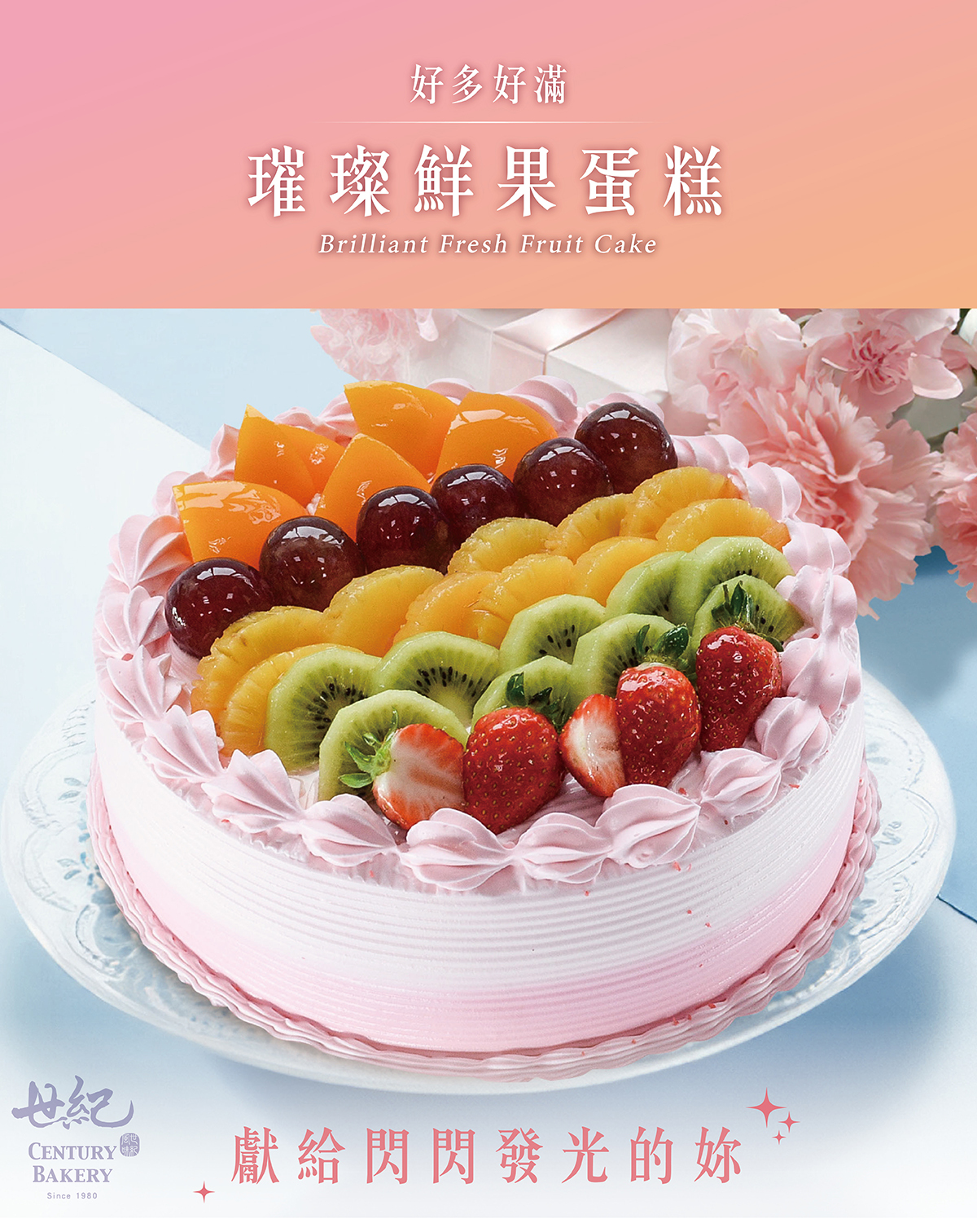 蛋糕上平鋪滿滿的水果,像似鑲滿耀眼璀璨的寶石,一般人都難以抵抗它耀眼的光芒,更何況喜愛水果的您更無法抵擋!!