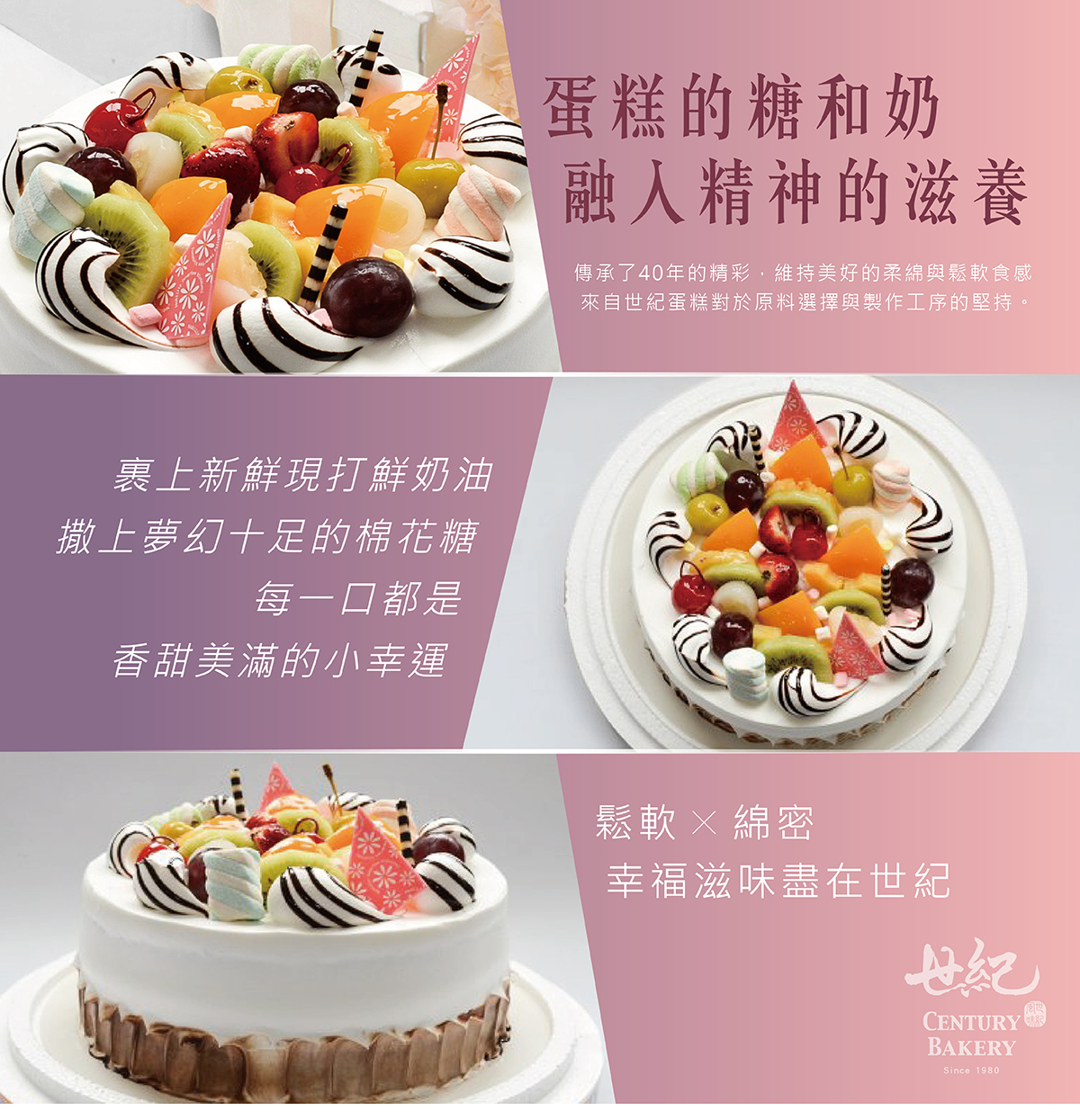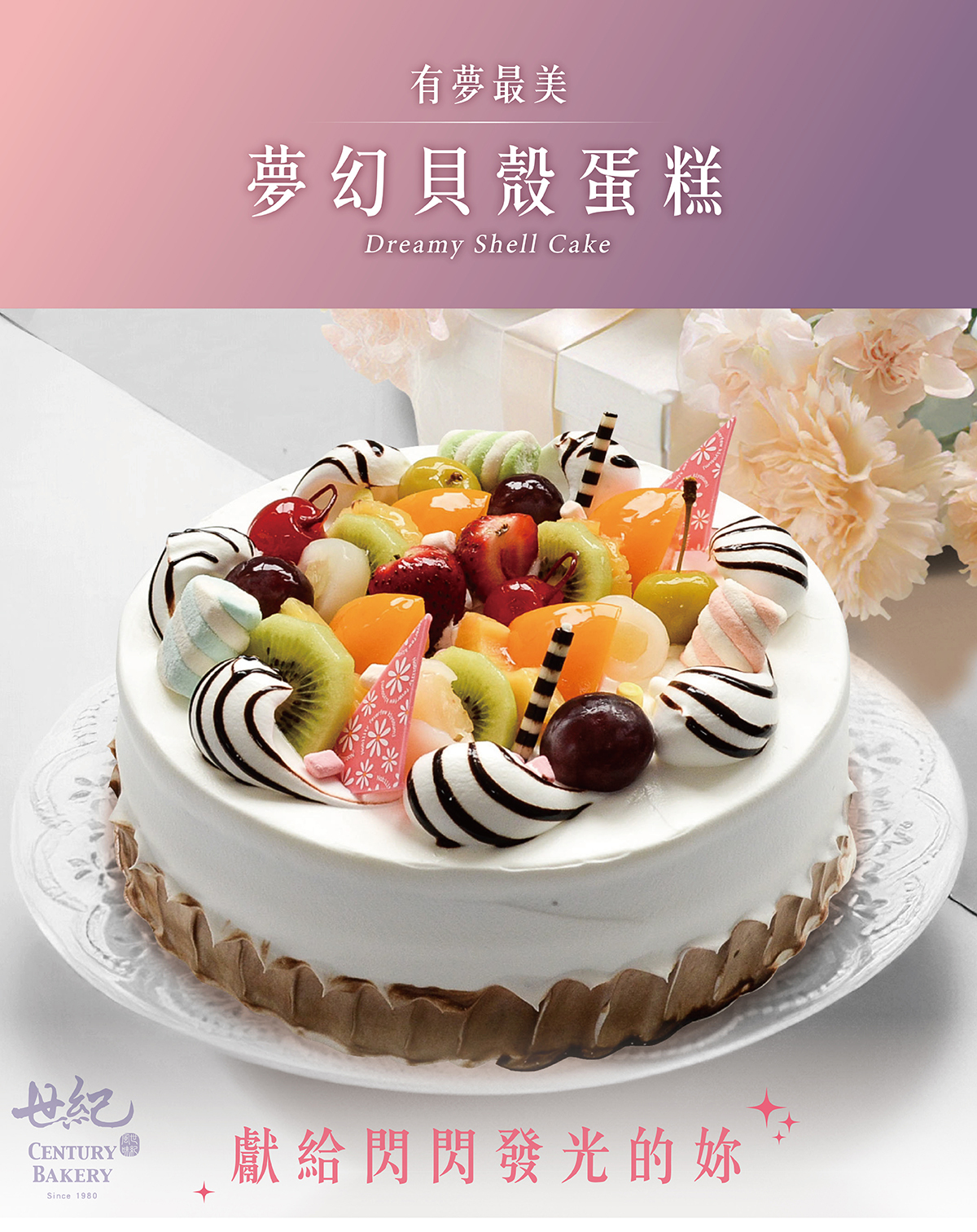世紀糕點特製的夢幻貝殼蛋糕,軟綿香草蛋糕體裹上新鮮現打鮮奶油,撒上夢幻感十足的棉花糖,每一口都是香甜美滿的小幸運。