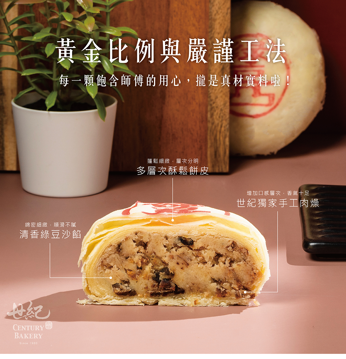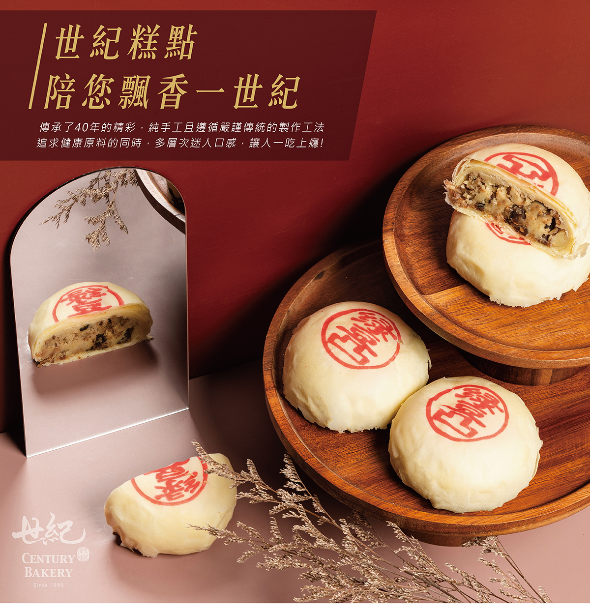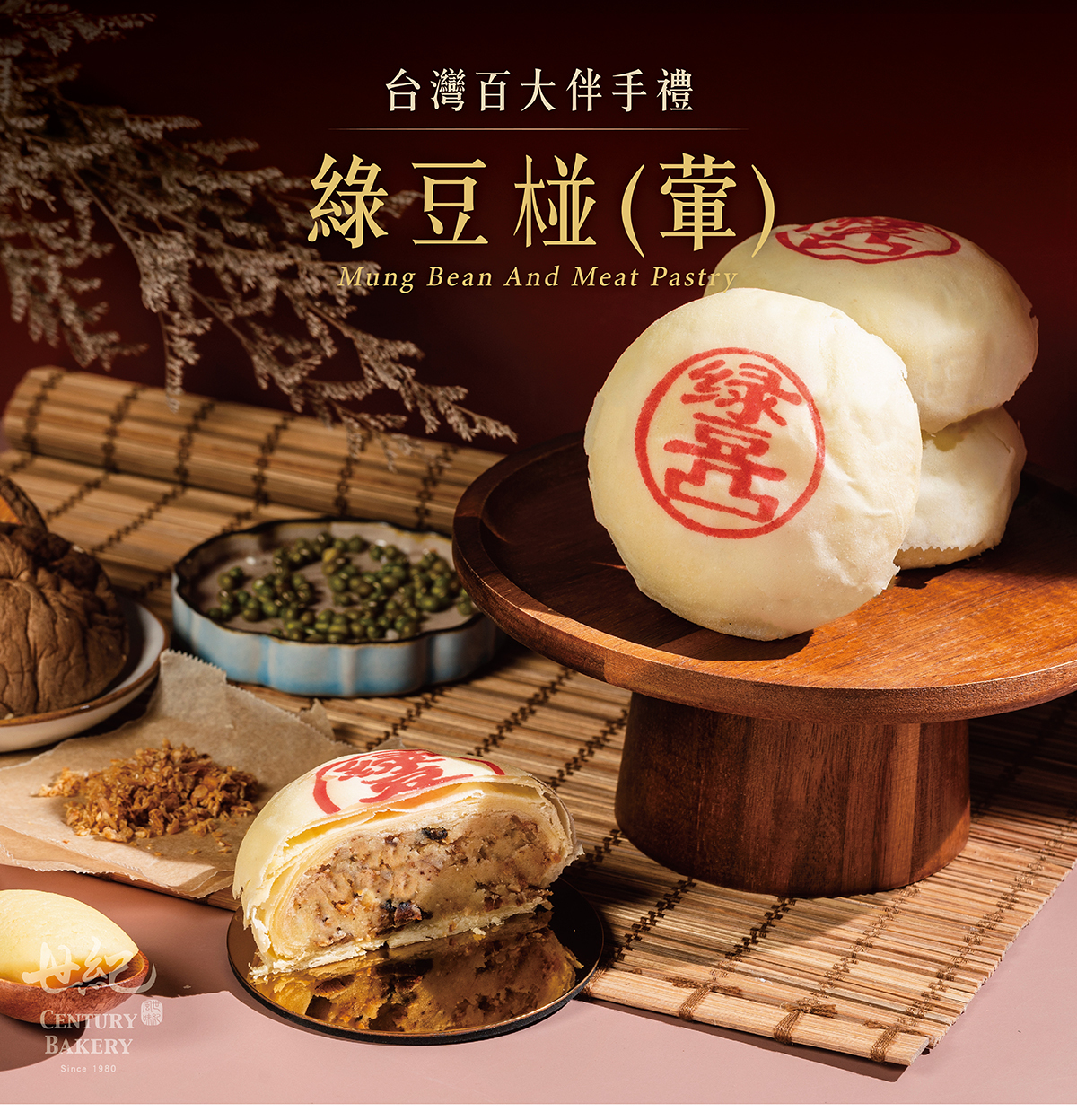 世紀糕點的綠豆椪百吃不厭、不甜不膩!綠豆沙加上特製滷肉,大人小朋友都愛不釋手。