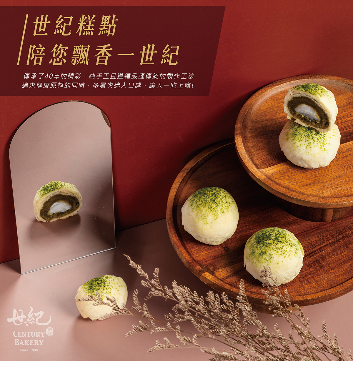 世紀糕點的包種茗香酥是一款精緻的台灣傳統點心,採用高品質的包種茶融合豆沙餡,以純手工方式製成。其外皮酥脆,內餡是口味清爽、略帶花香氛圍的包種茶餡,配上麻糬軟糯的口感,味道香濃而不膩,讓人一口接一口地享受其中。